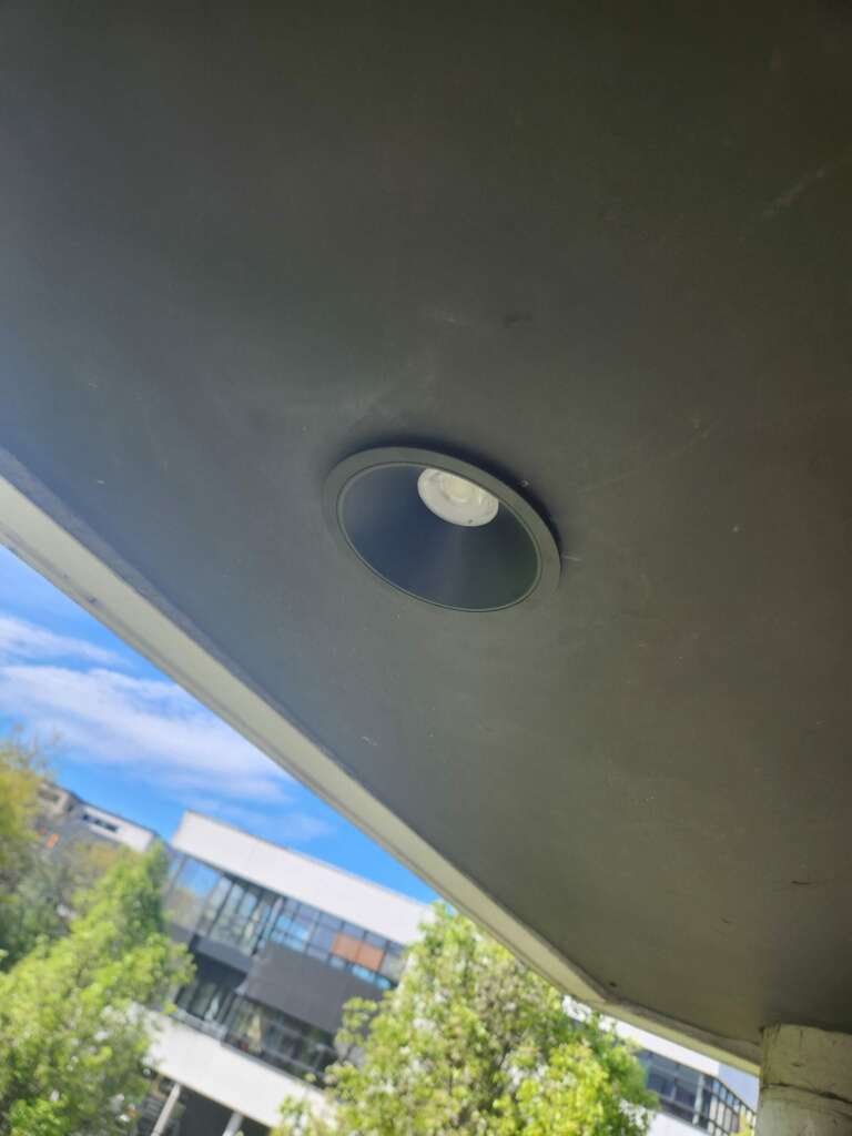 La copropriété souhaitait une solution sobre dans son esthétique et véritablement performante sur le plan énergétique. La contrainte principale résidait dans l’intégration architecturale : les nouveaux luminaires devaient s’inscrire discrètement dans la façade sans altérer les lignes épurées du bâtiment, tout en délivrant un flux lumineux homogène et qualitatif. De plus nous avions une contrainte de diamètre existant à respecter.