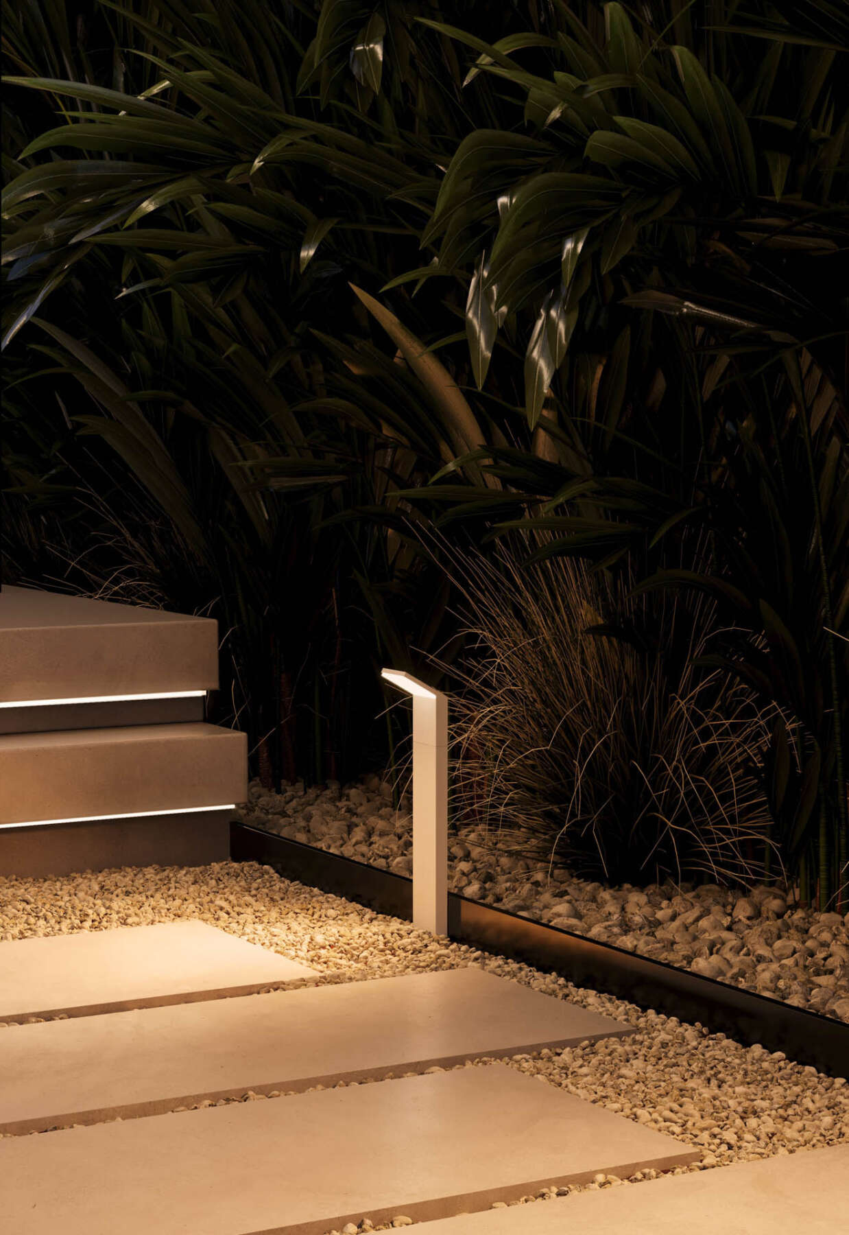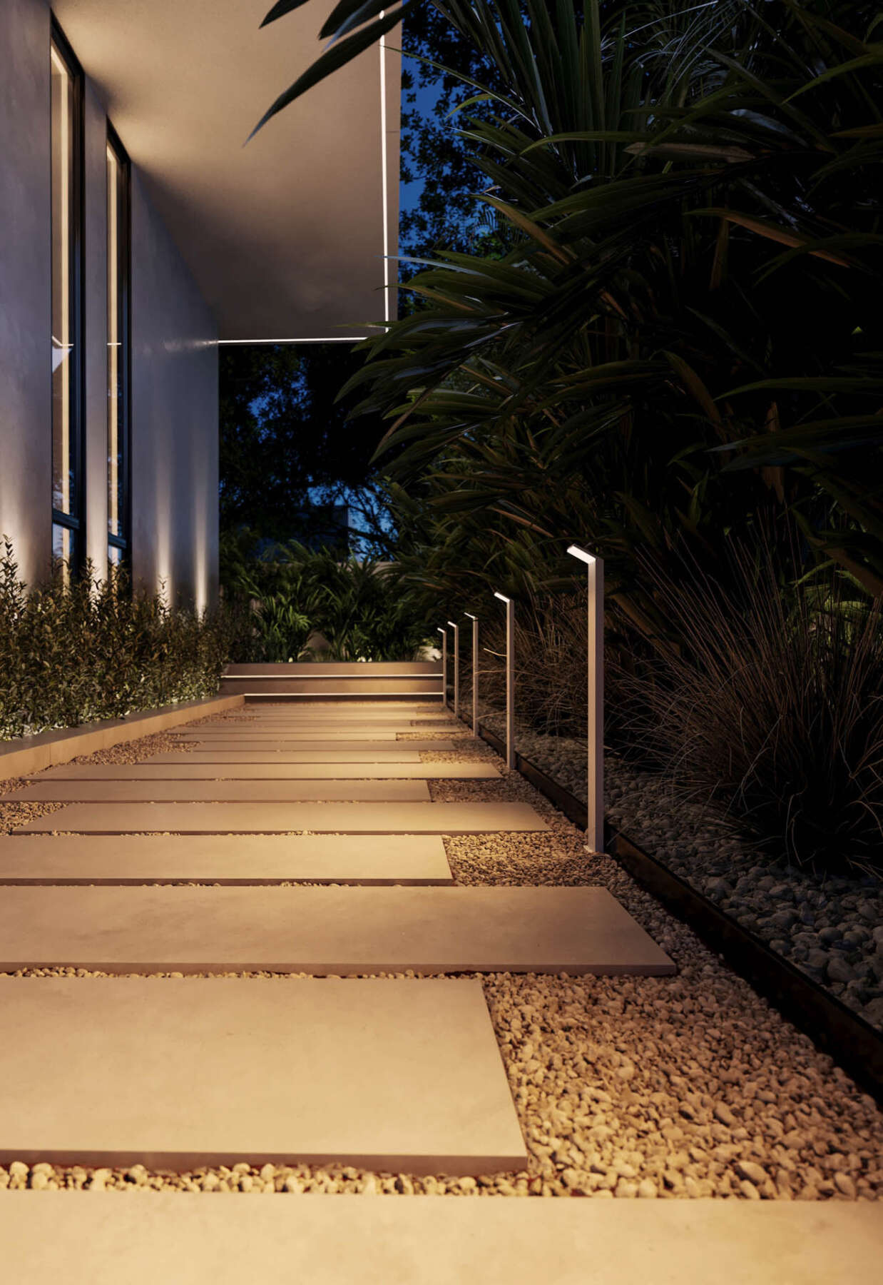 Cam est une balise LED extérieure de 9W conçue avec une hauteurs de 60 cm. Ce phare dirige la lumière vers le sol à travers son faisceau de 120° et émet des points de lumière subtils dans tout l'espace, ce qui le rend idéal pour mettre en évidence les zones de transition, telles que les chemins ou les allées.