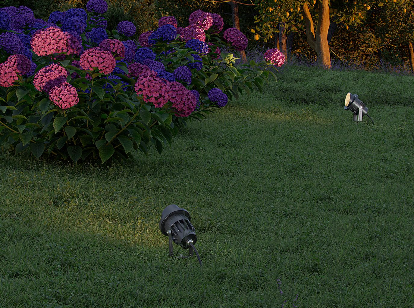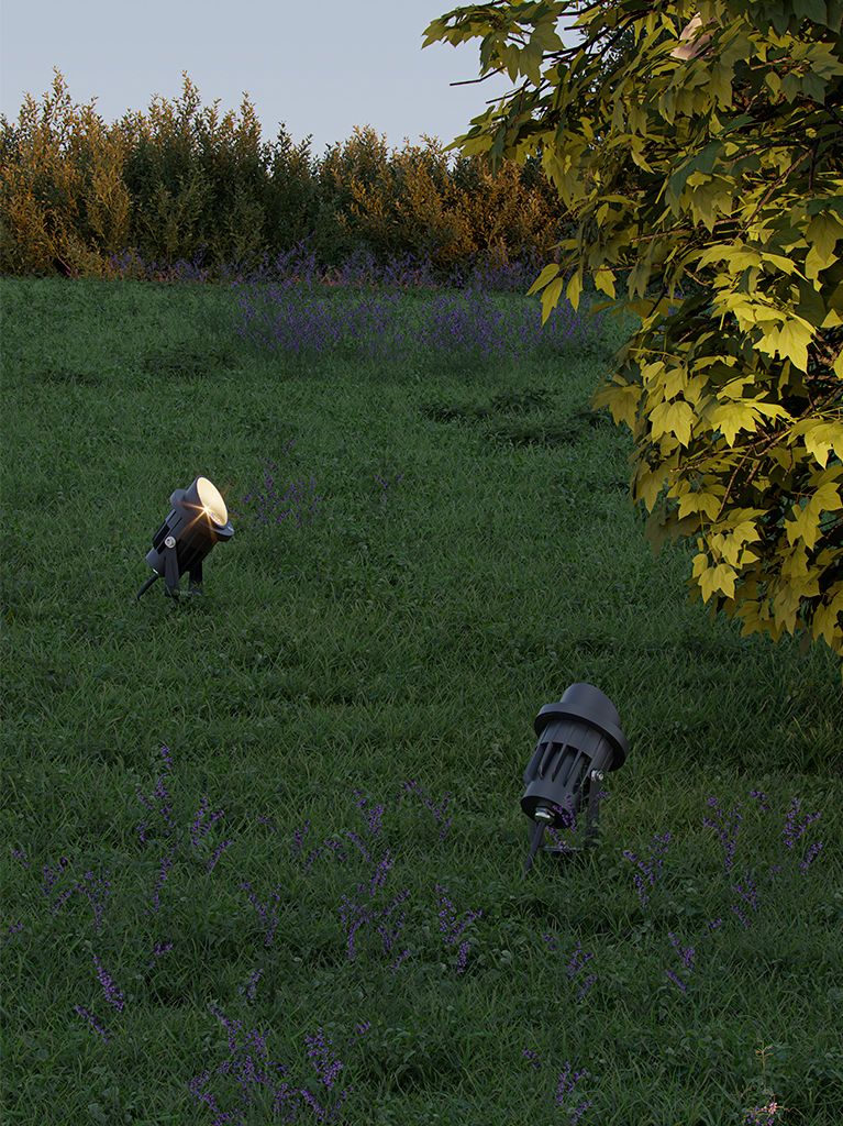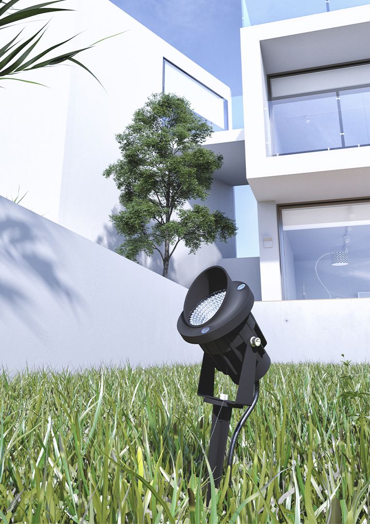 Spot piquet en aluminium CORTEN, LED 5W (450Lm), tension 230V, 3000K (blanc chaud), angle 45°, pour intérieur ou extérieur (IP65). Idéal pour mettre en valeur la végétation du jardin, les petites statues.