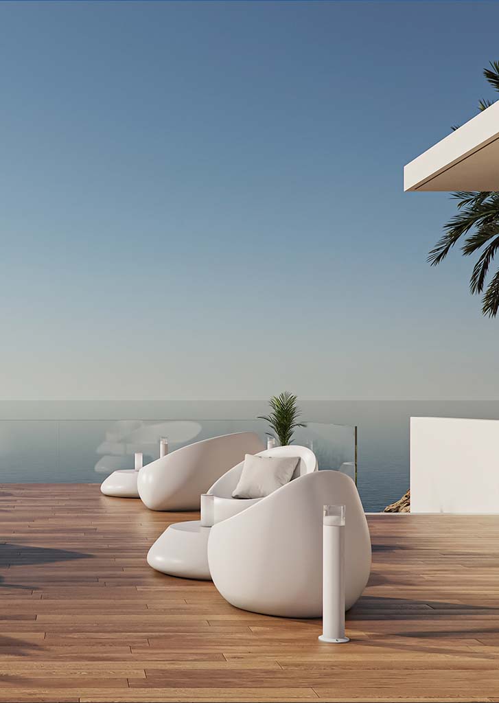 Disponible en deux versions de 30 cm et 60 cm, Tura est un projecteur LED cylindrique d’extérieur d’une puissance de 12 W, avec un faisceau lumineux de 180º offrant une conception d’éclairage stratégique et esthétique, un indice de protection IP65 et un indice de protection IK06.